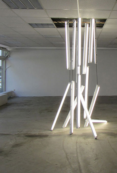 „Needles & Razors“ 2012, light box with enclosed fan, 150x150x20 cm.